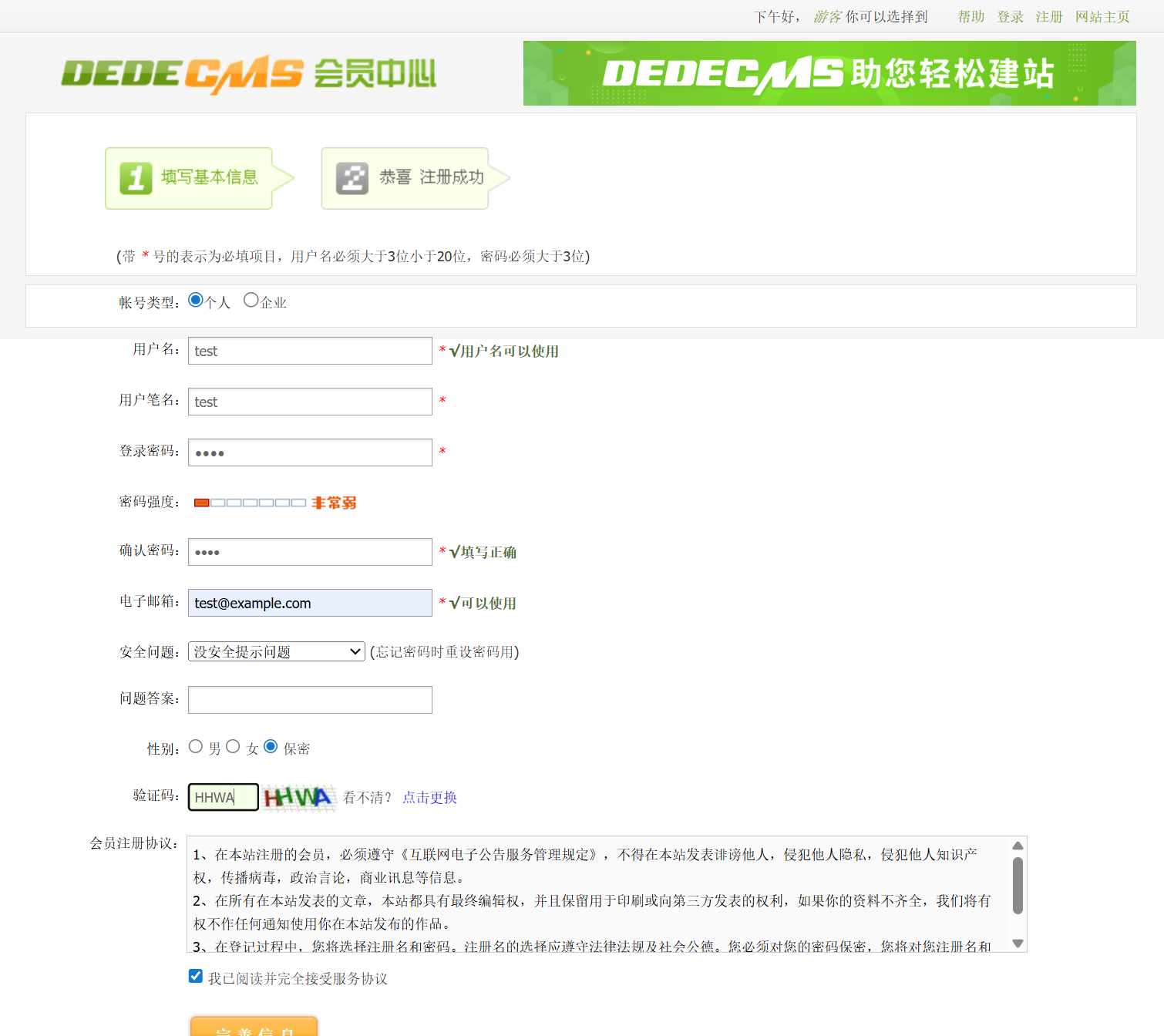 信息全部填test就可以