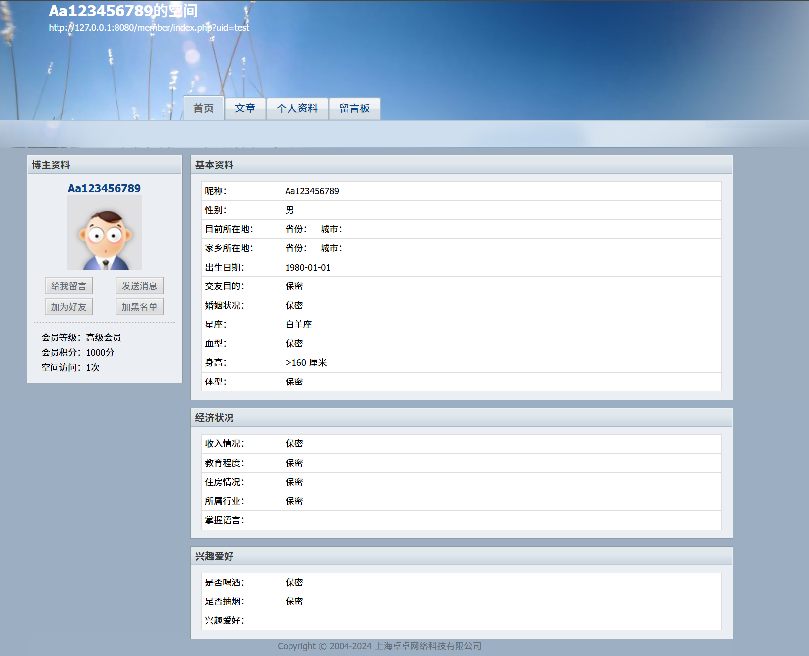进入题目环境,是一个基于dedecms的博客系统,注册一个测试账号
