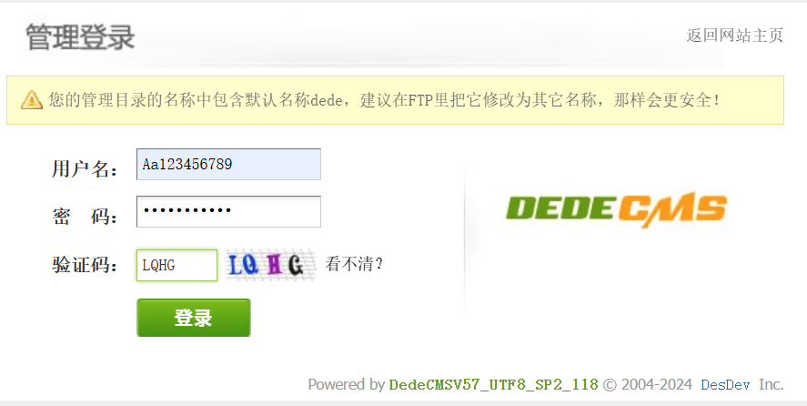 查阅资料,dedecms的后台管理页面通过/dede/login.php进入