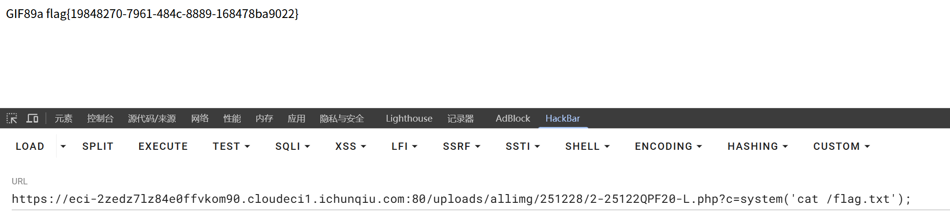 可以看到flag就在根目录,cat /flag.txt得到flag