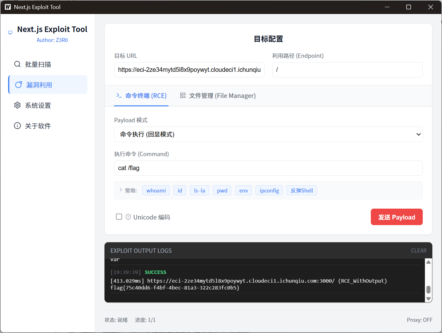 确实存在这个漏洞,直接RCE,flag依然在根目录